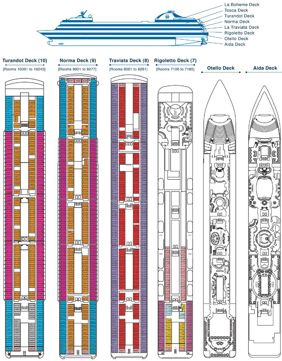 From breakfast in the morning to the midnight buffet, there are several dining options available on board. You can have brunch delivered to the privacy of your stateroom, enjoy a casual outdoor lunch by the pool from the grill or pizzeria and sample a variety of snacks during the afternoon and evening. Stop by the Coffee Corner and enjoy the benefits of cruising on an authentic Italian cruise with an espresso or cappuccino, Also available at the bars thought the ship are tropical cocktails, champagnes, sparkling Italian wines, brandies, cognacs, whiskies, beer, sherries and grappa.